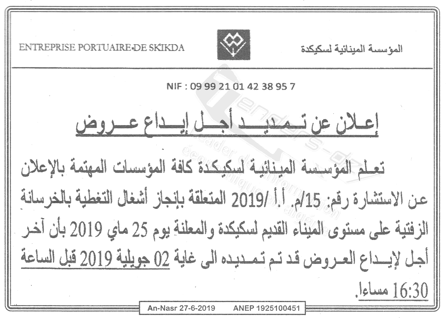 | Montant de Retrait du Cahier de Charges : 5000.00 DA |