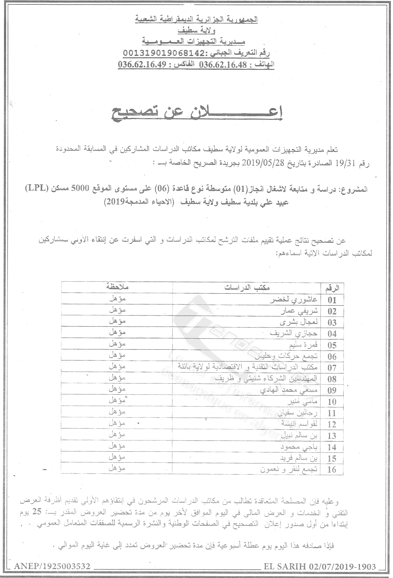 DEP WILAYA DE SETIF (DIRECTION DES EQUIPEMENTS PUBLICS)