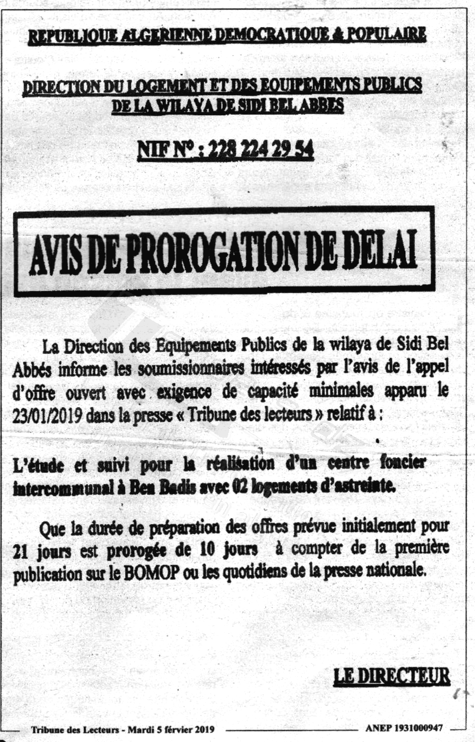 DEP WILAYA DE SIDI BEL ABBES (DIRECTION DES EQUIPEMENTS PUBLICS)