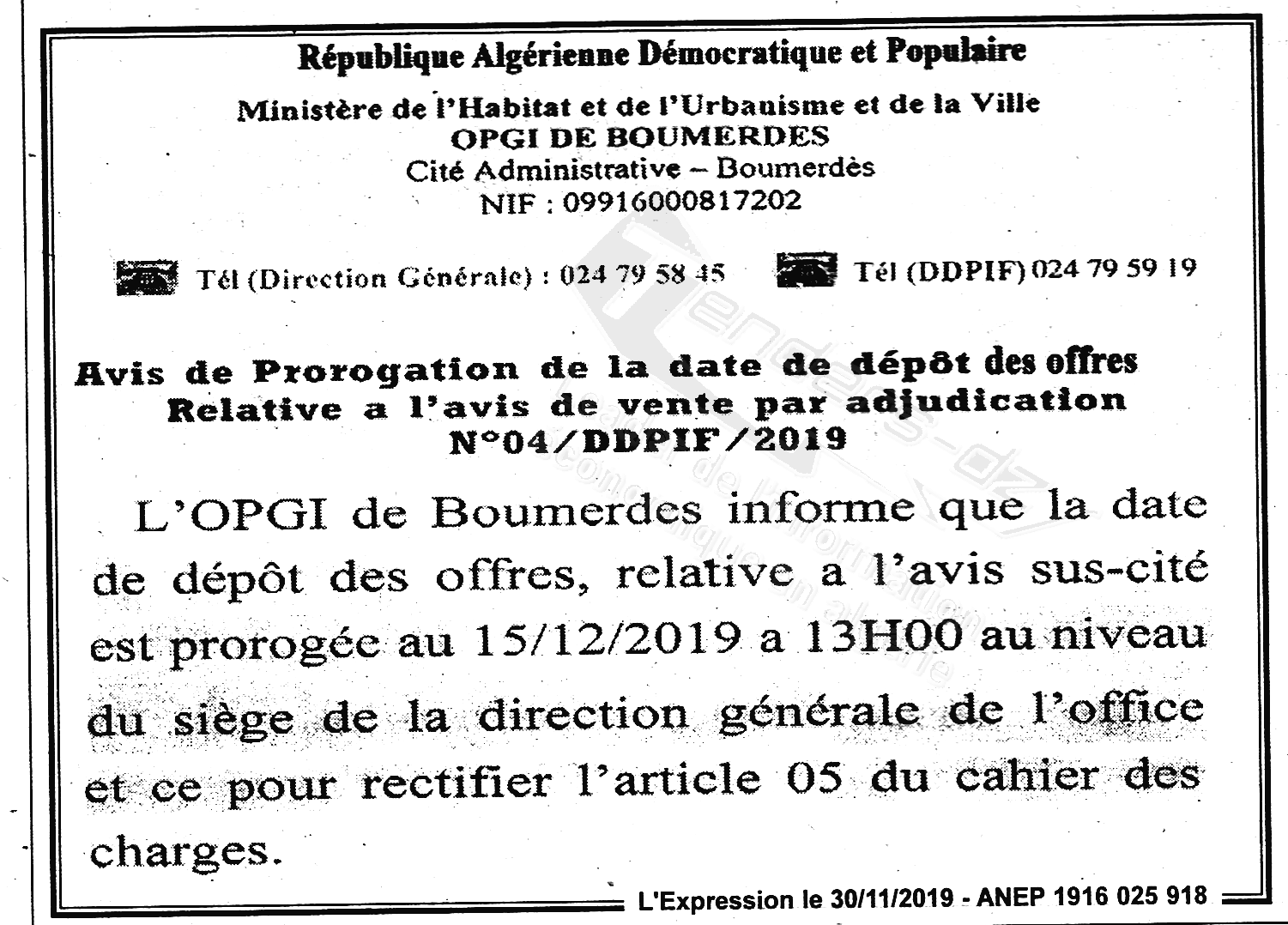 OPGI WILAYA DE BOUMERDES (OFFICE DE PROMOTION ET DE GESTION IMMOBILIERE)