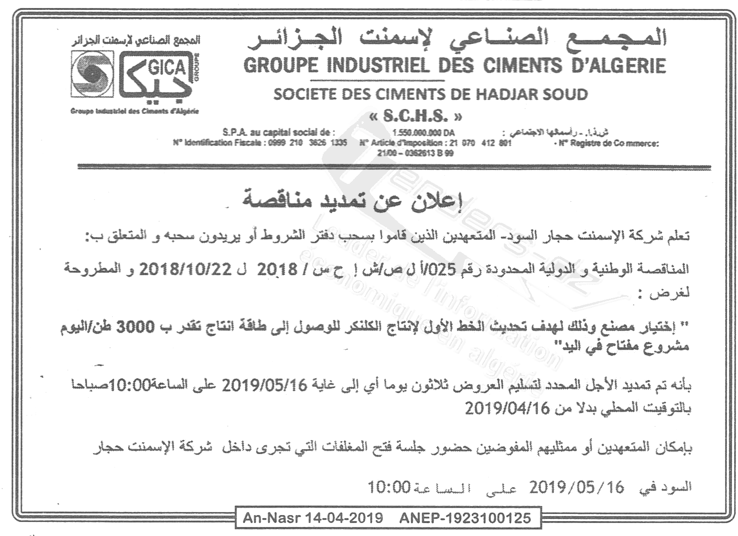 SCHS SPA (SOCIETE DES CIMENTS DE HADJAR SOUD)