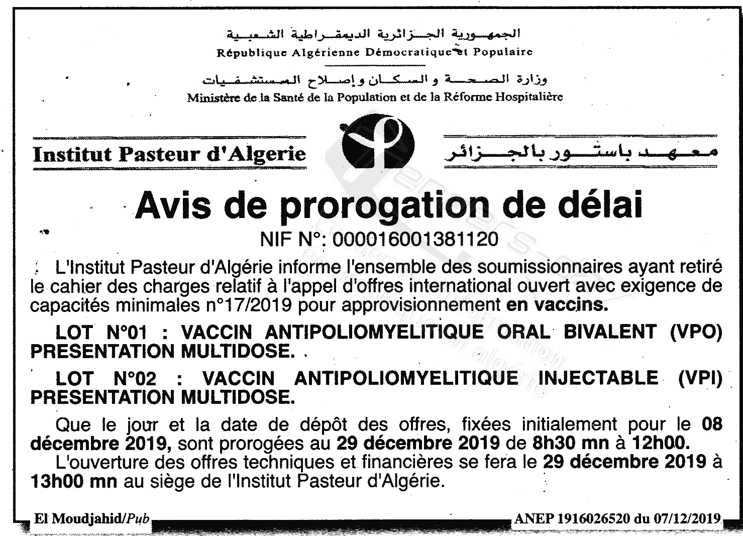 | Montant de Retrait du Cahier de Charges : 50.000 DA |