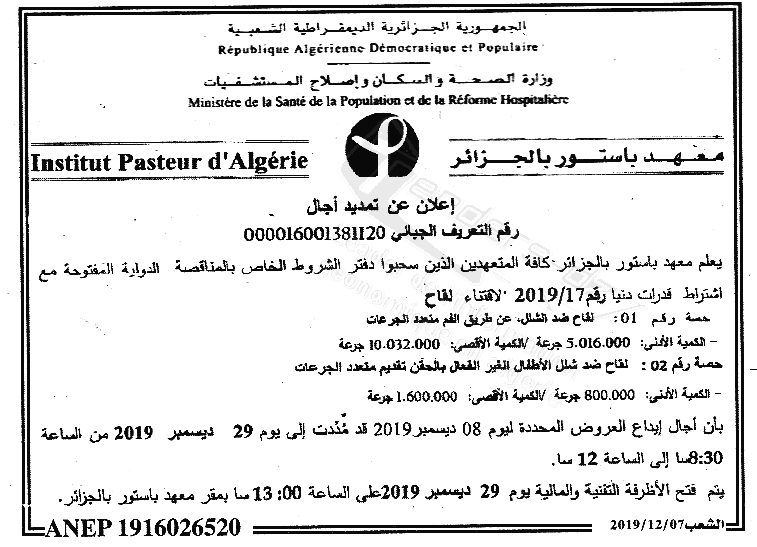| AVIS Attribution : Approvisionnement en vaccins en deux lots séparés |