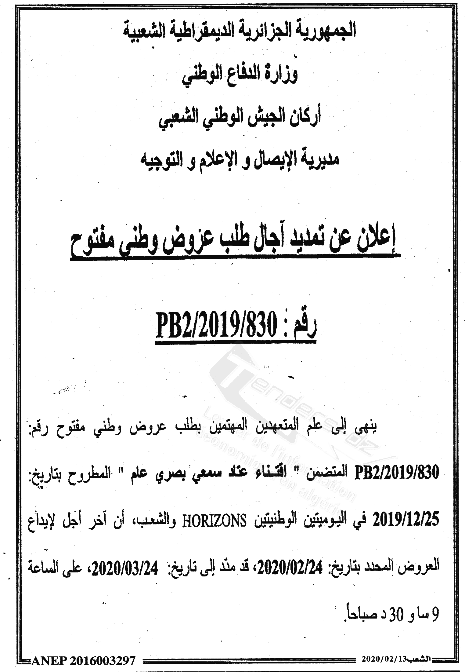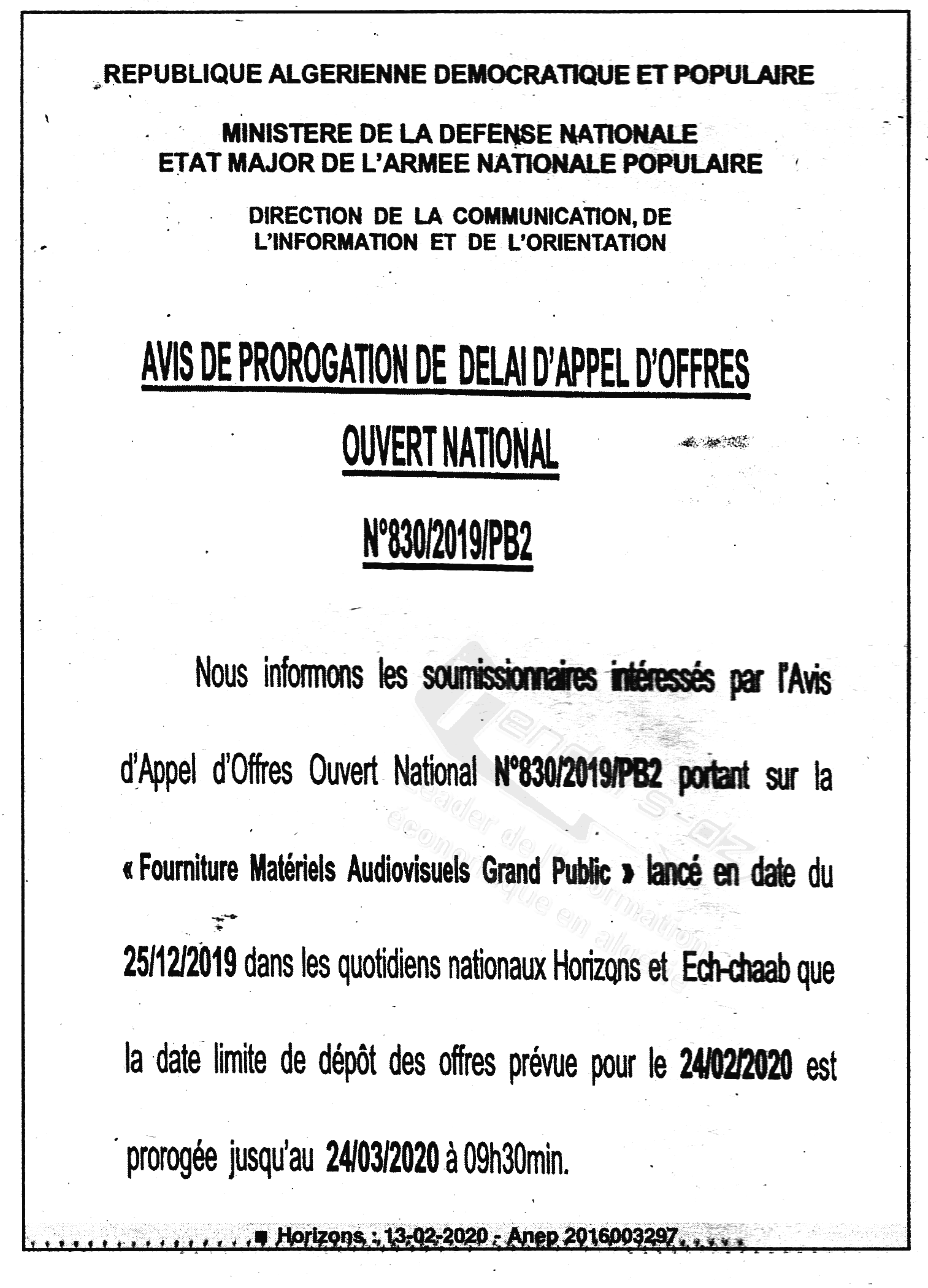 | Montant de Retrait du Cahier de Charges : 5000.00 DA |