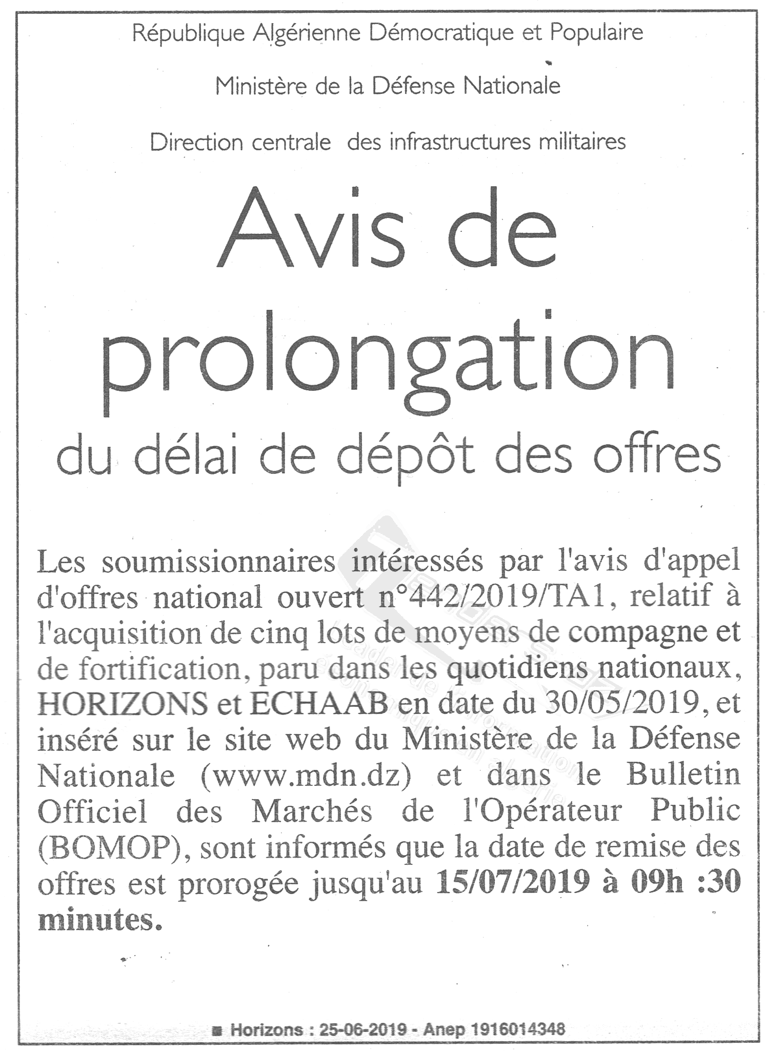 | Montant de Retrait du Cahier de Charges : 5.000.00 DA |