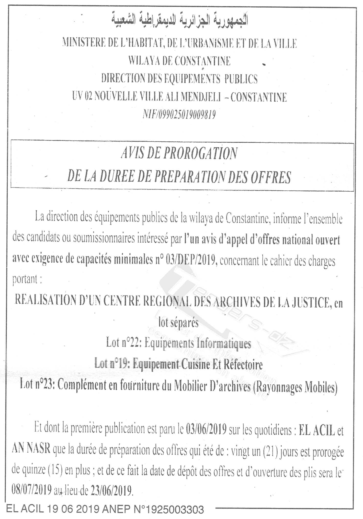 DEP WILAYA DE CONSTANTINE (DIRECTION DES EQUIPEMENTS PUBLICS)