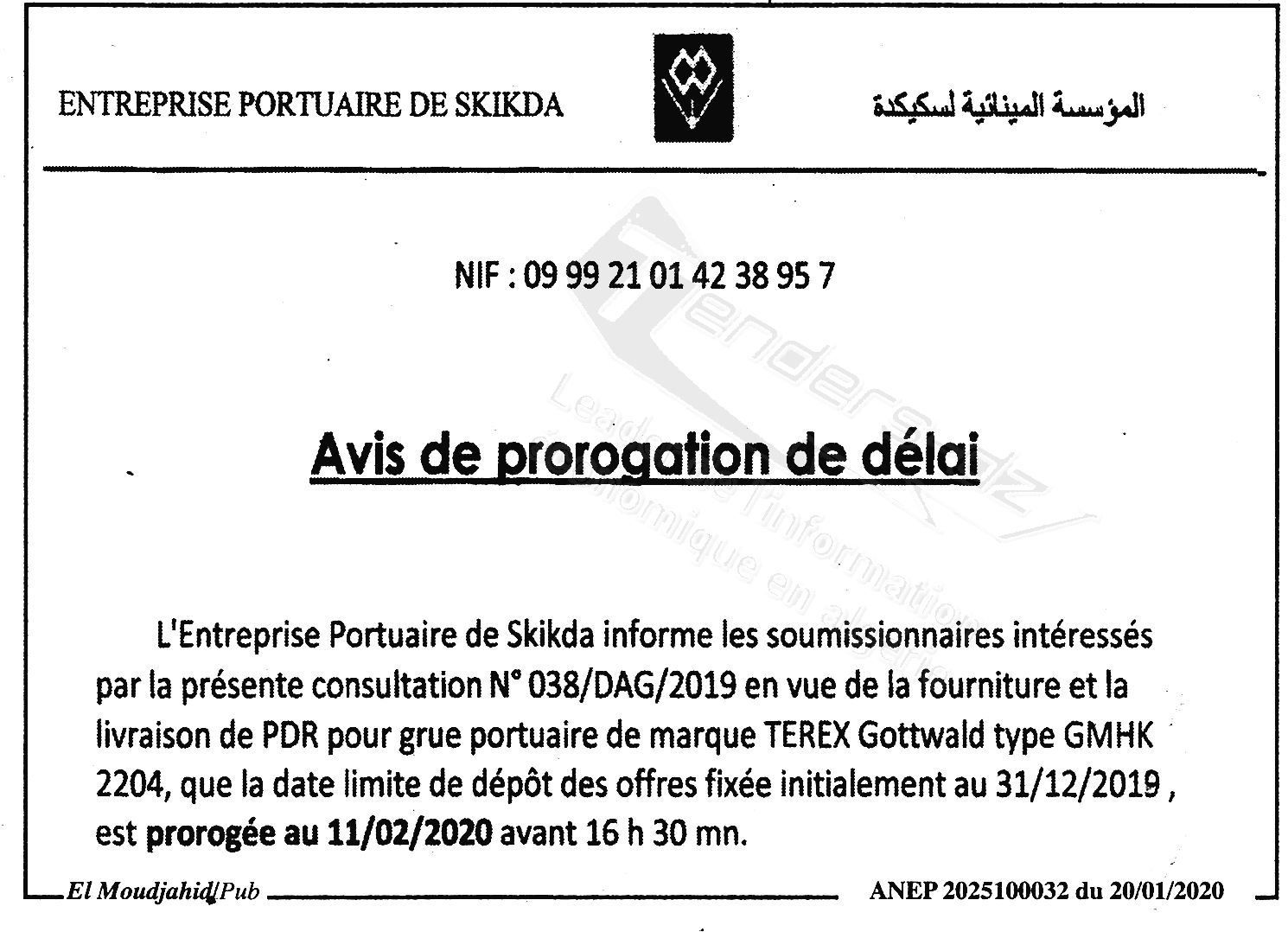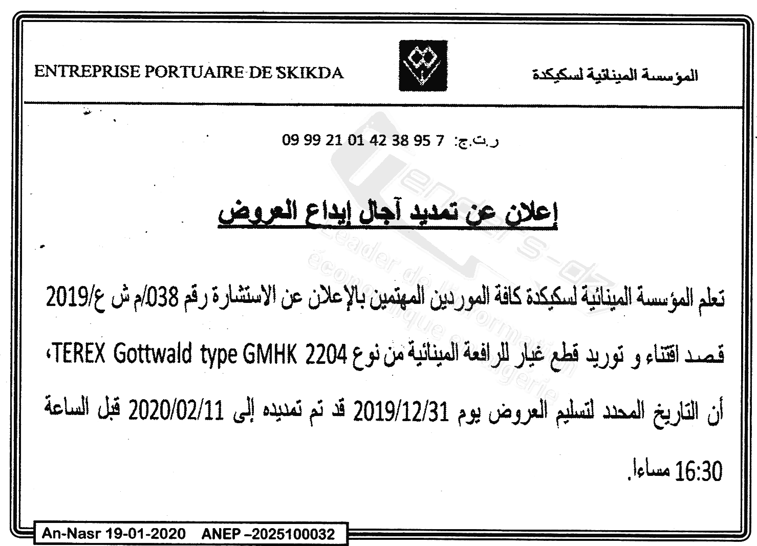 | Montant de Retrait du Cahier de Charges : 5000 DA |