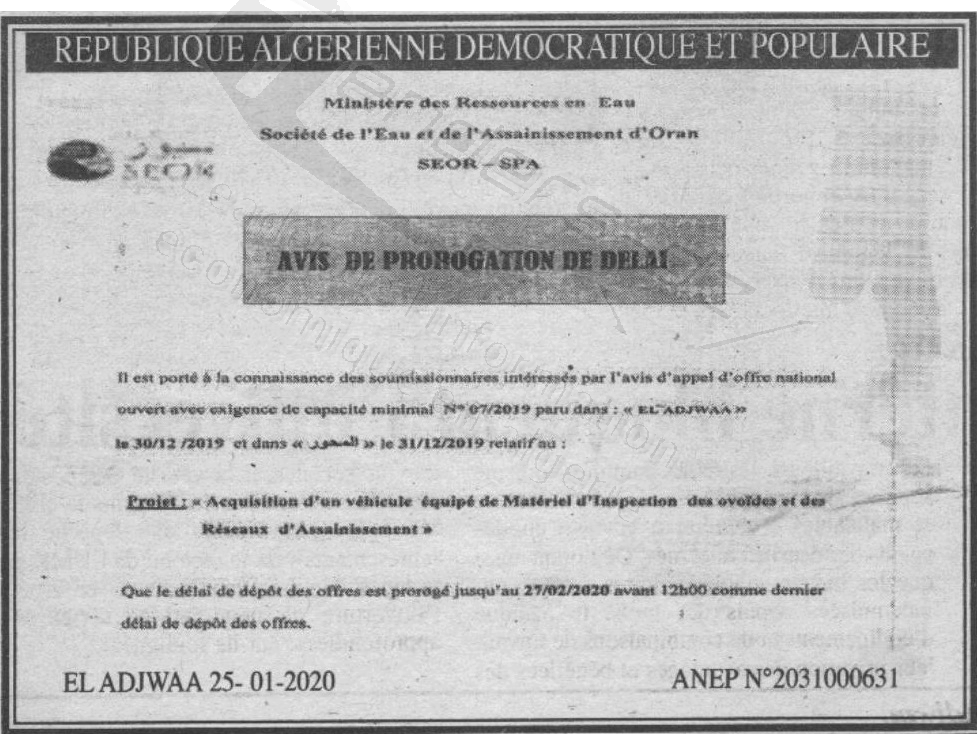 | Montant de Retrait du Cahier de Charges : 5000.00 DA |