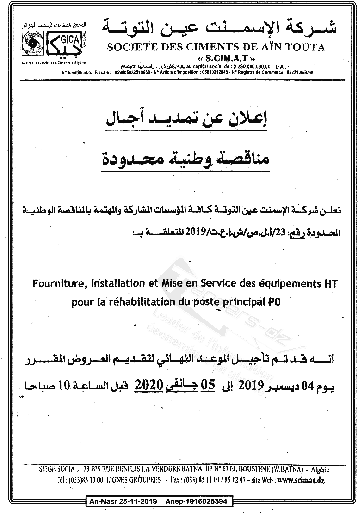 | Adresse : ZI Kechida Batna BP 340 RP wilaya de Batna |