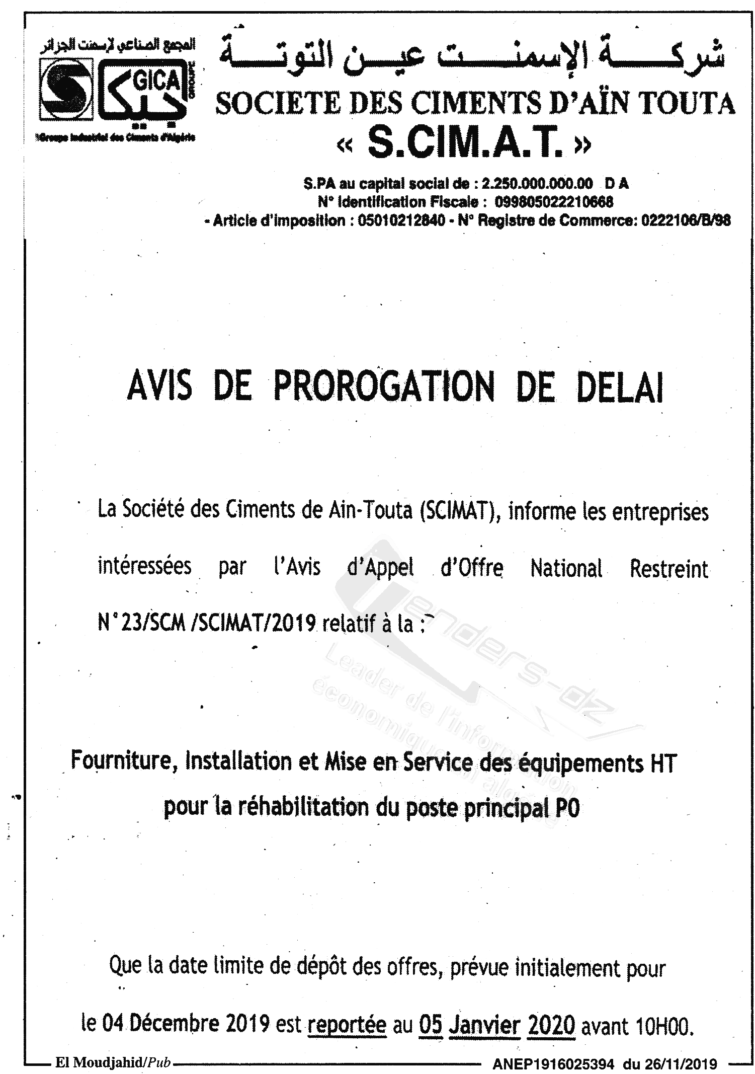 | Montant de Retrait du Cahier de Charges : 20.000.00 DA |