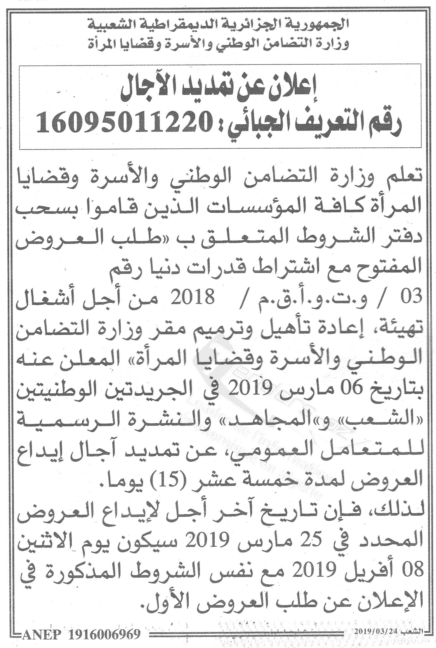 Montant de Retrait du Cahier de Charges : 5000 DA