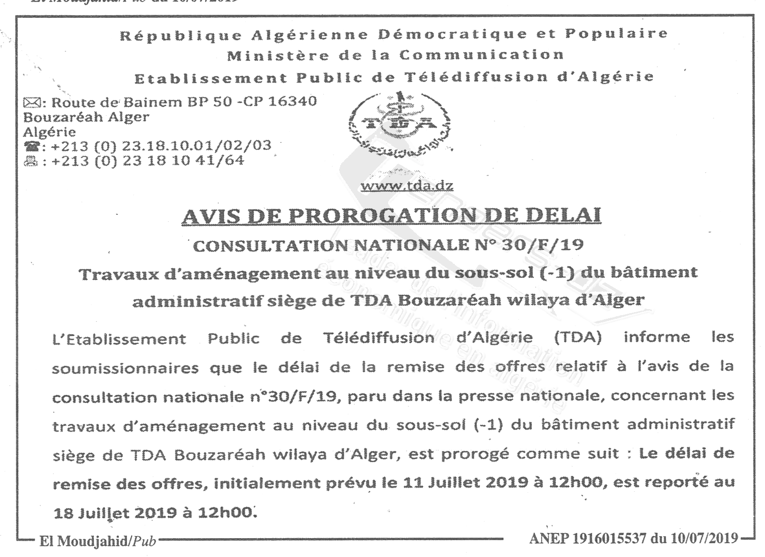 Site Web : www.tda.dz |