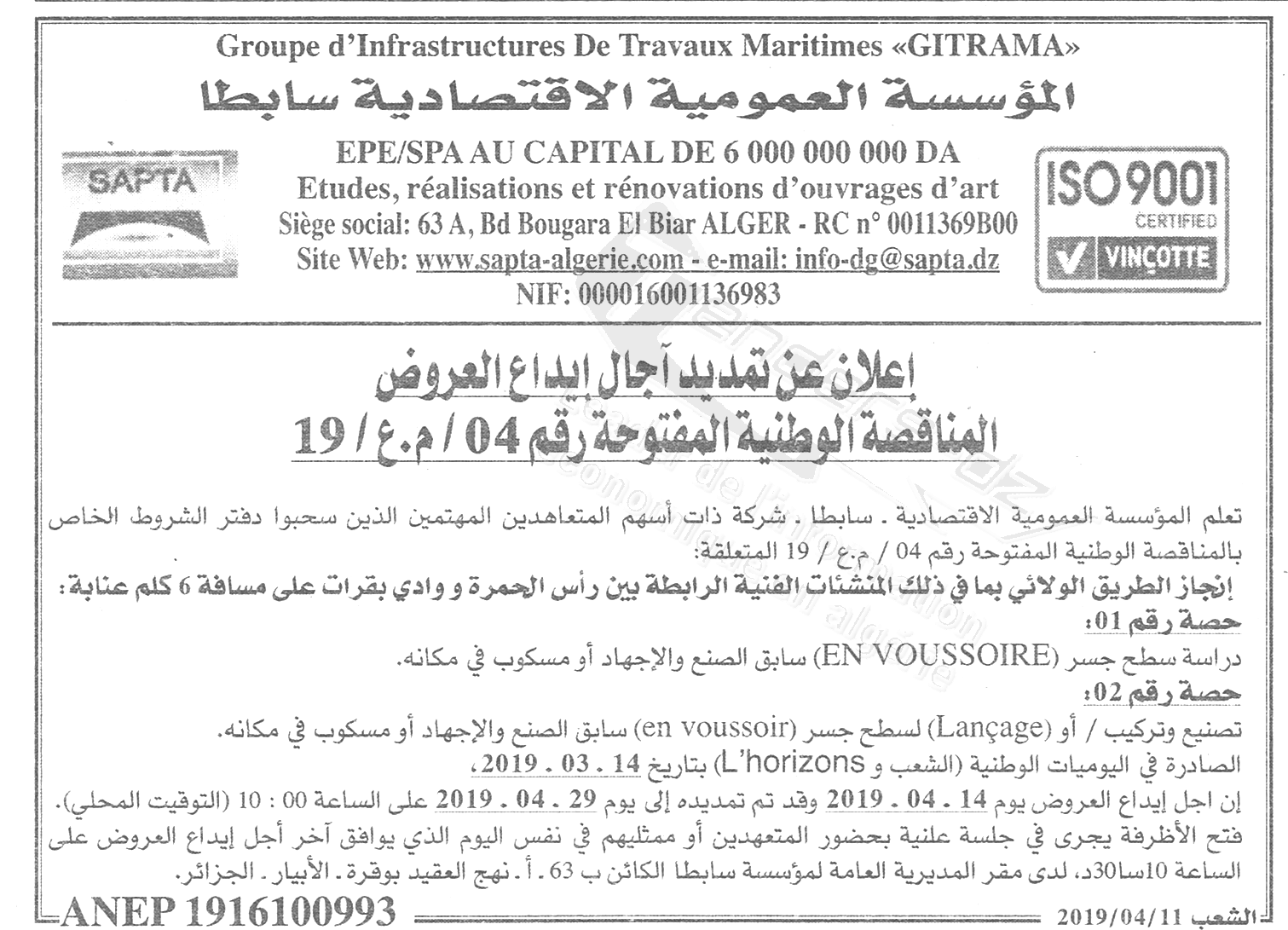 Email : info-dg@sapta.dz Site Web : www.sapta-dz.com