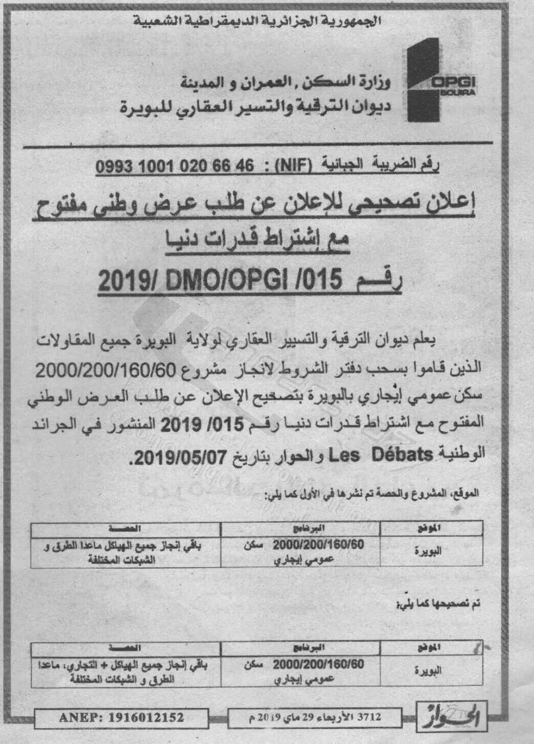 OPGI WILAYA DE BOUIRA (OFFICE DE PROMOTION ET DE GESTION IMMOBILIERE)