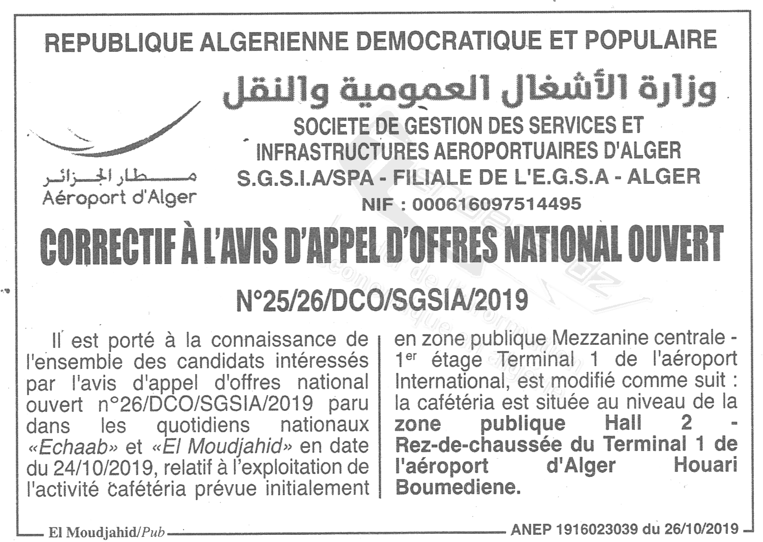 | Montant de Retrait du Cahier de Charges : 10.000,00 DA |