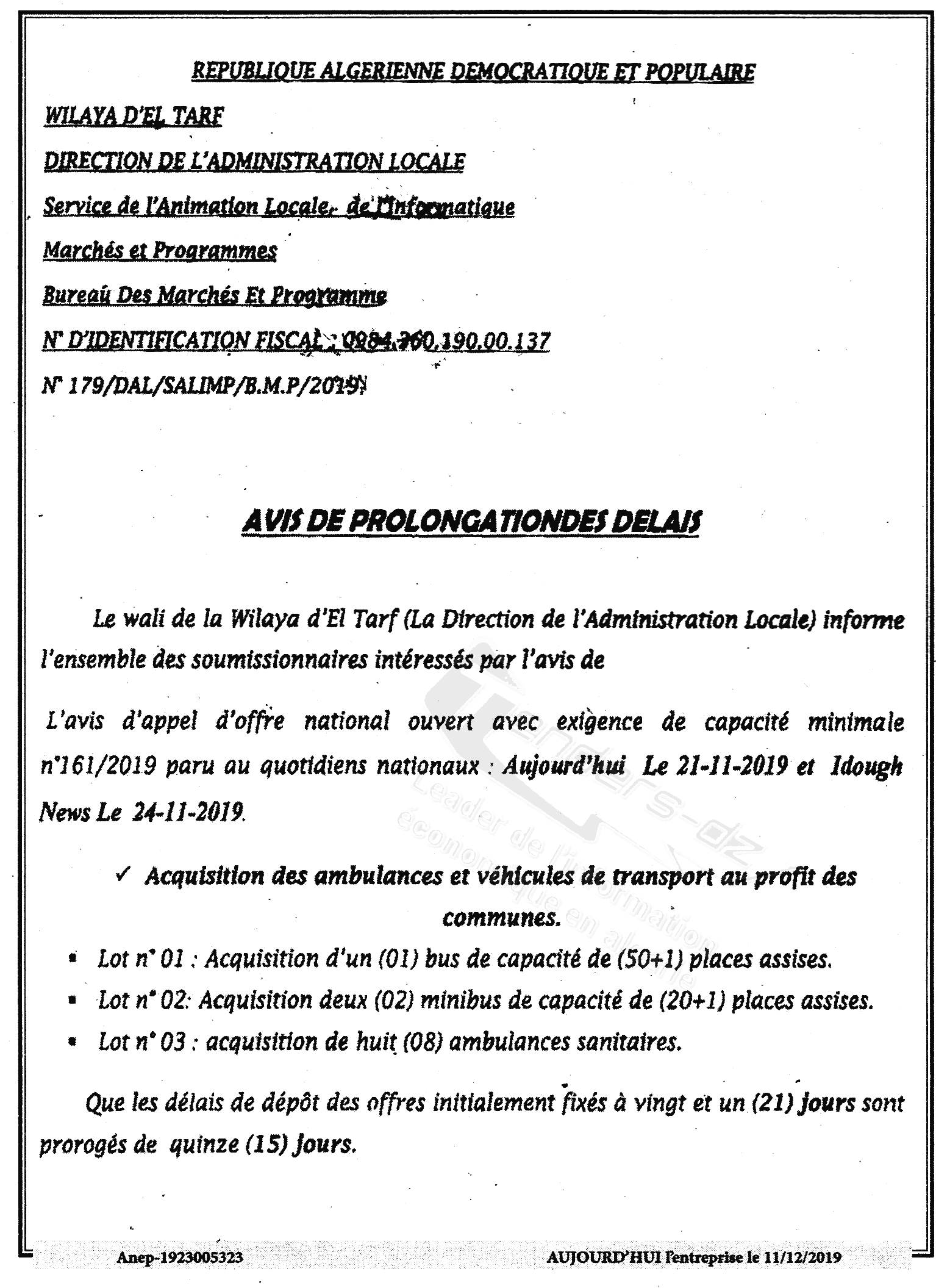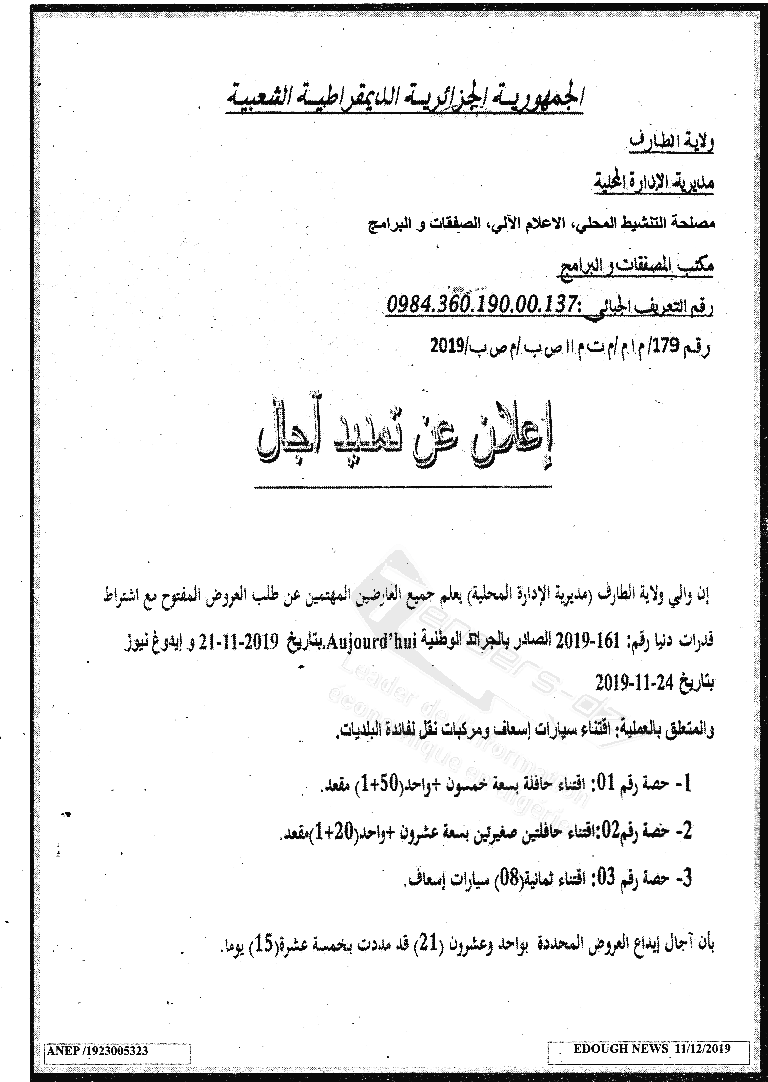 DAL WILAYA D'EL TARF (DIRECTION DE L'ADMINISTRATION LOCALE)