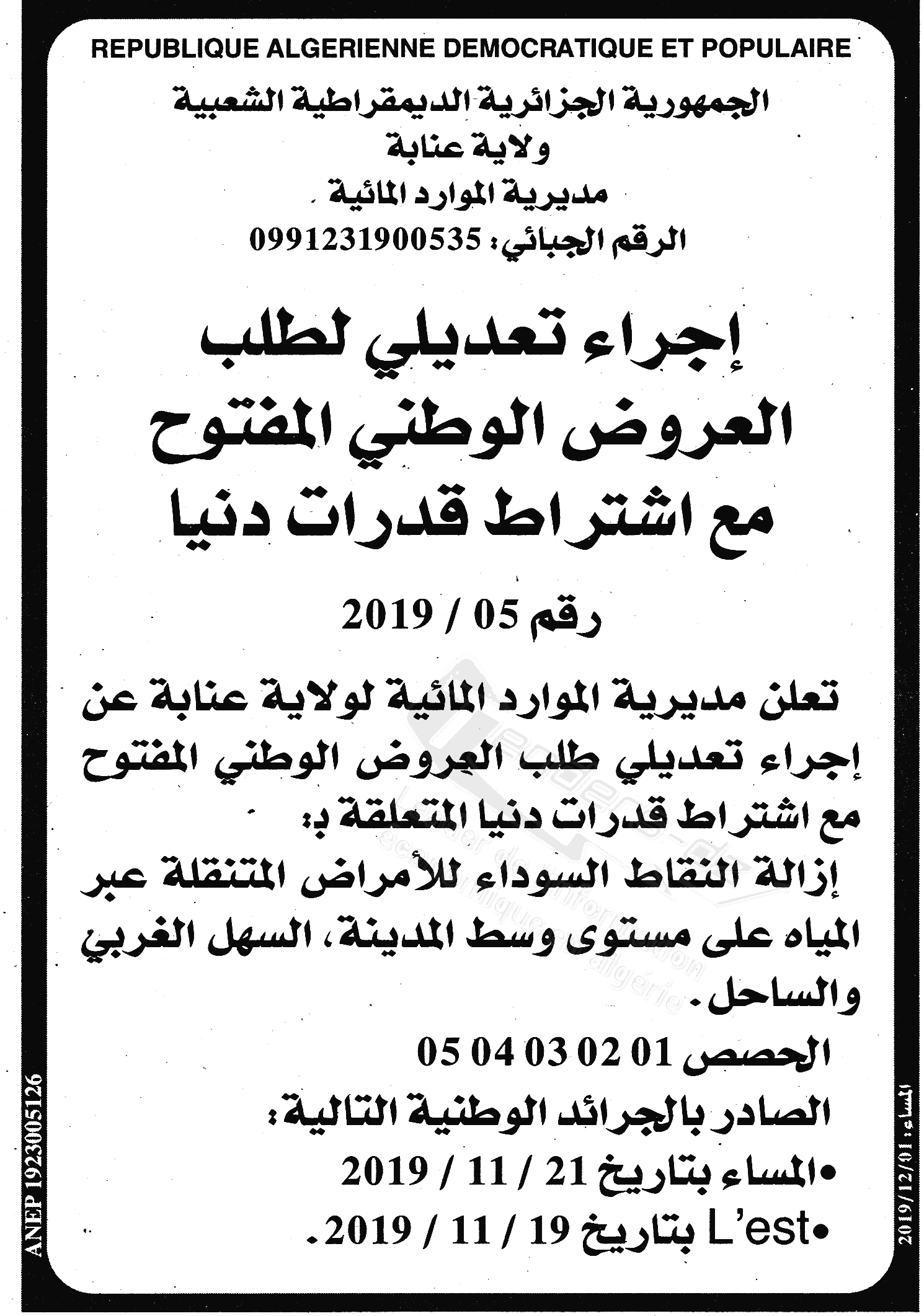 DRE WILAYA D'ANNABA (DIRECTION DES RESSOURCES EN EAU)